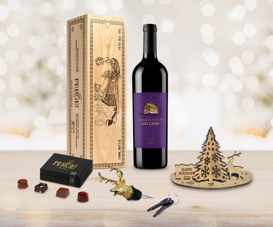 We introduce you to The Founding Collection: LOG CABIN. This proprietary red blend – from our award-winning winemaker Todd Heth – exhibits dark blackberry, bing cherry, and plum notes perfectly into layers of coffee and tobacco. The finish is dry with long-lasting berry fruit. Silky but firm tannins, this wine is enjoyable now but has the ability to age well in the cellar.