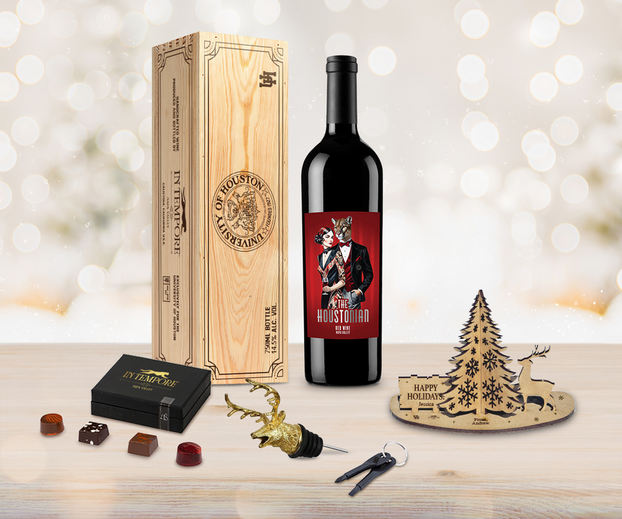 We introduce you to The Houstonian. This 2019 Red Wine is an artful red blend created by winemaker Todd Heth. This wine exhibits dark blackberry, bing cherry and plum notes perfectly into layers of coffee and tobacco. The finish is dry with long lasting berry fruit. Silky but firm tannins, this wine is enjoyable now but has the ability to age well in the cellar.