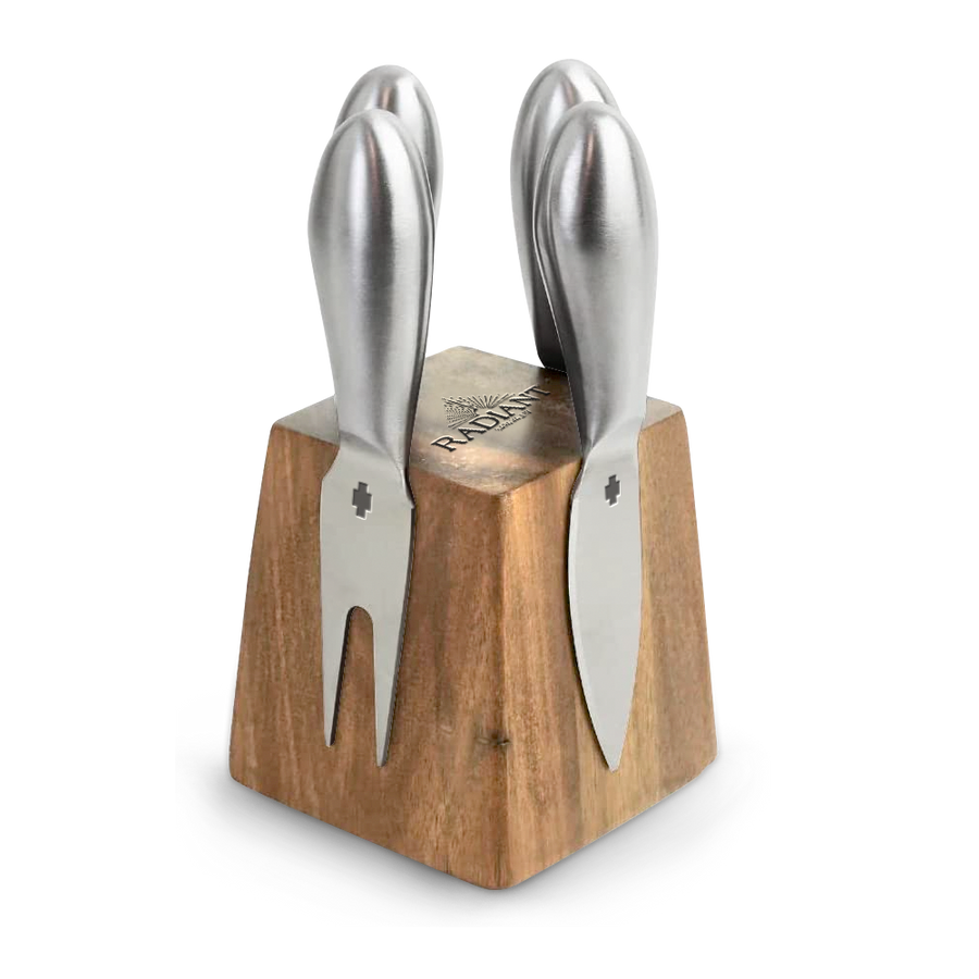 Experience the beauty and functionality of our wood block knives set. Carefully crafted from selected Acacia wood, this set features a stylish and sturdy wood block designed to hold your knives securely. With its space-saving design, the set includes a selection of high-quality tools, eliminating the need for separate cheese knives and forks.