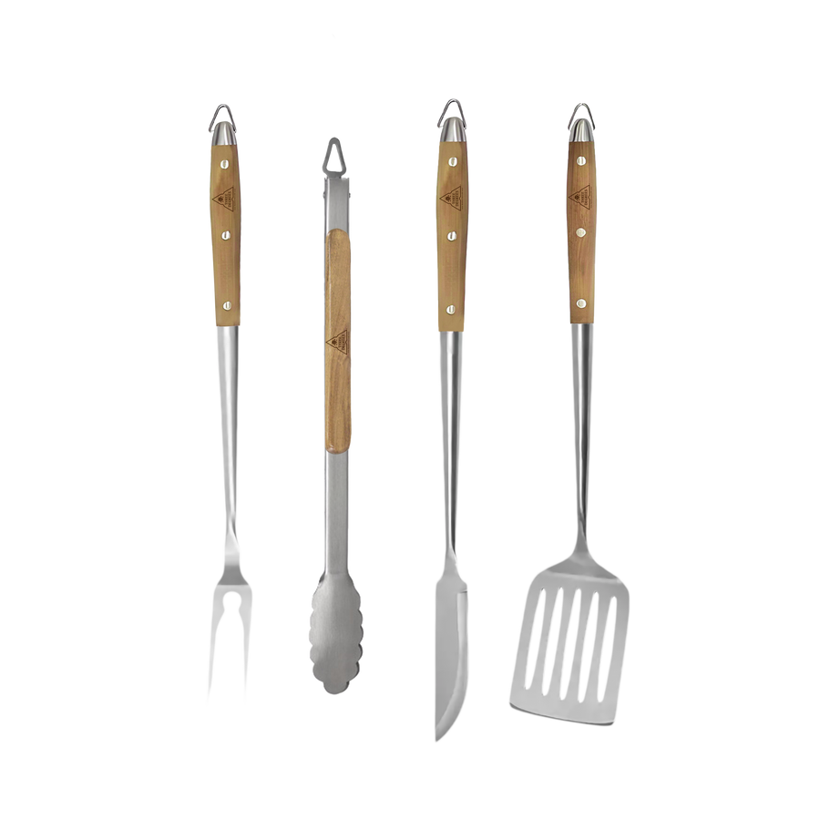 Upgrade your grilling tools with our 4-piece BBQ Grill Set. Crafted from thick stainless steel, this durable set includes long-handled tongs, a spatula, a fork and a knife. Designed for heat resistance and easy cleaning, it’s perfect for all your cooking needs.