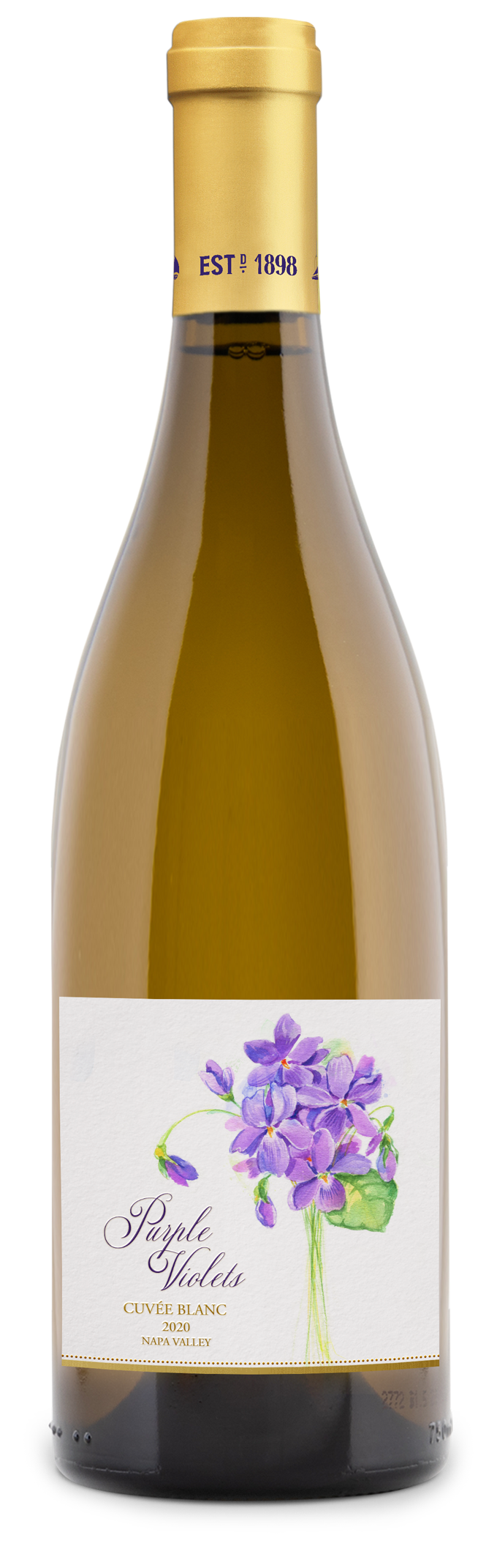 We introduce you to Purple Violets. This elegant white wine blend is alluring and complex, with a sensuous offering of tropical fruits, white flowers and subtle spice. The nose is like a bouquet of flowers and jumps from the glass with ripe lemon, white peach and orange blossom followed by notes of toast and white pepper. On the tongue, lemon bursts forward with pineapple and other tropical fruit, with undertones of vanilla. The finish is bright and zingy and mellows with vanilla and subtle spices in its length.