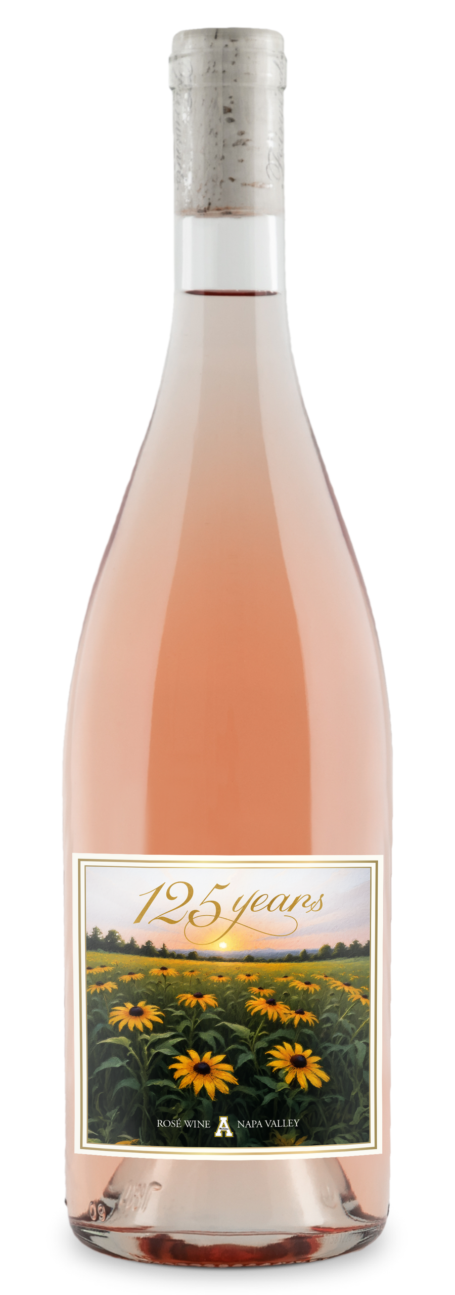 We introduce you to 125 Years, our 2021 Rosé of Cabernet Sauvignon. The watermelon and strawberry notes burst out of the glass. When served cool on a warm day, the juicy acidity of the 2021 Rosé makes for a very refreshing and versatile wine, perfect to share on any occasion. Look for the hidden imagery in the rose petals.