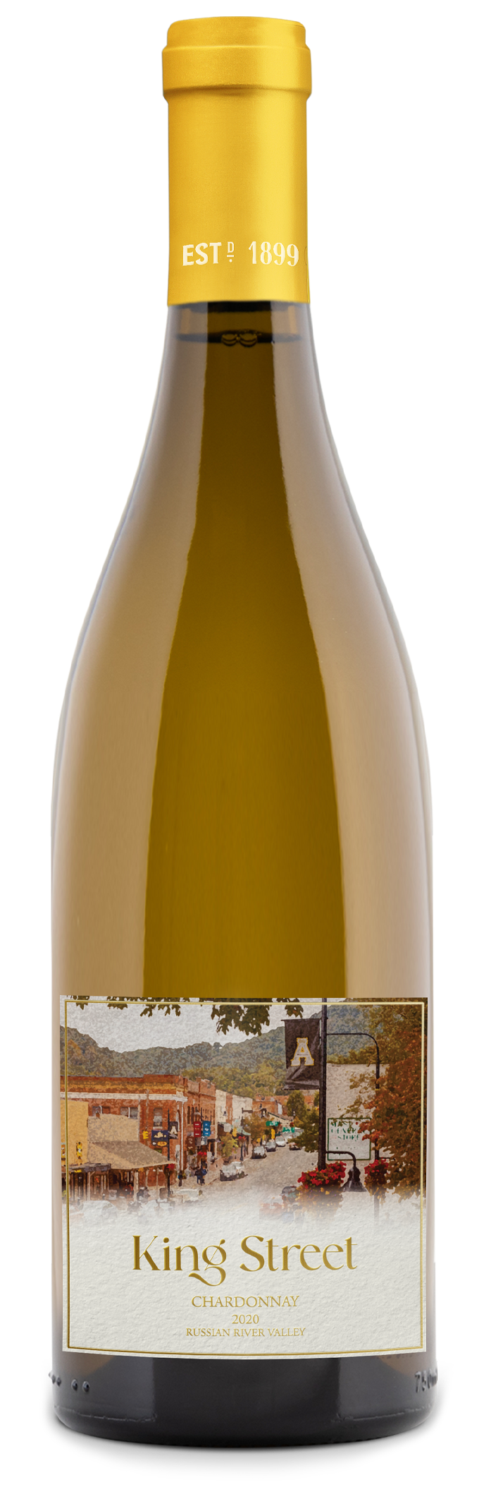 We introduce you to King Street. This Chardonnay is a real gem. Hailing from the cool and foggy climate for the Russian River Valley in Sonoma County, this beautiful medium-bodied wine was grown slowly to build intense flavors over time. This wine was aged in French oak and displays a beautiful balance of fruit, oak and liveliness on the palate and exhibits lush mango and toasted almond. Balanced fruit with tarte acidity makes this wine a classic example of Premium Russian River Chardonnay.