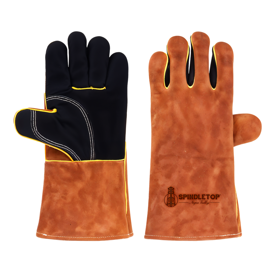 Protect your hands and forearms from extreme heat with these extra-long 16-inch gloves. It is made with 1.2mm thick and soft shoulder split natural cowhide leather, which provides protection from extreme heat, flame retardant, puncture, cut and oil resistant. The inside is made with soft and sweat-absorbent full cotton lining. Certified at 932°F with heat-resistant thick insulated cotton with air-isolated aluminum foil, these gloves are a must-have for any grill master.