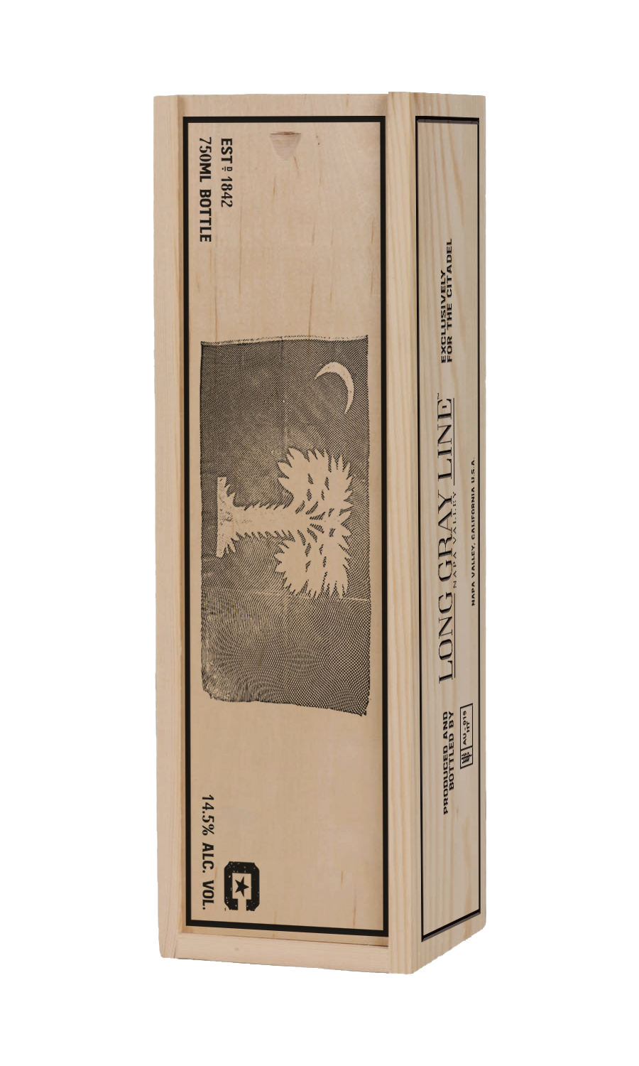 Long Gray Line fire-branded single vintage wooden wine crate. Please note that the purchase includes the wood crate only, and wine is not included.