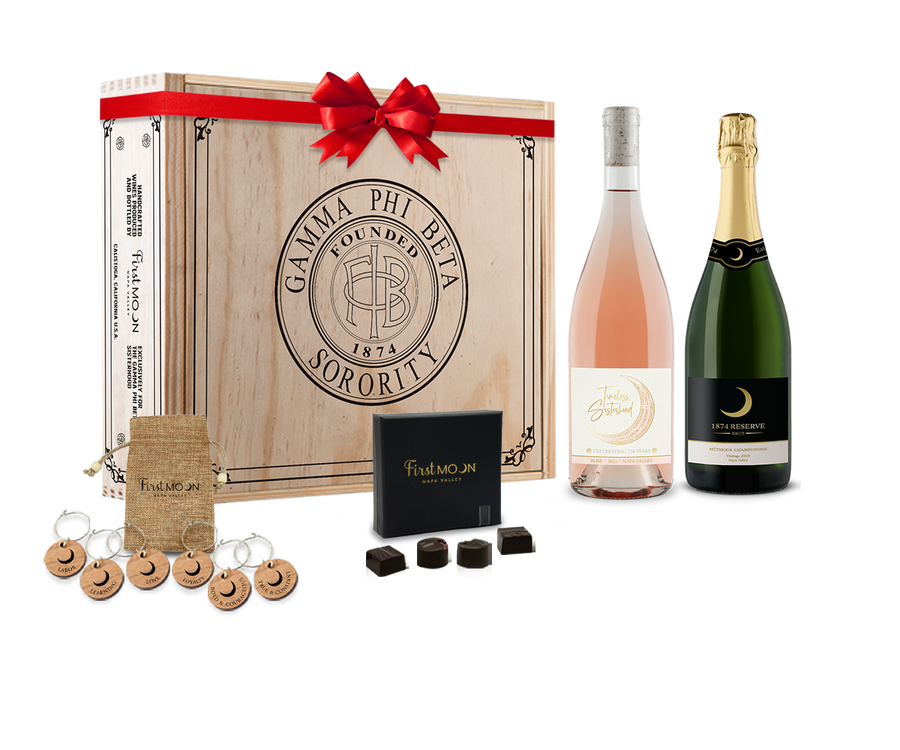 Whether you spot a crescent on a tile, necklace or shining in the sky, odds are you think of Gamma Phi Beta and the countless friendships and memories created. The crescent moon is one of the most frequently recognized symbols of Gamma Phi Beta, and it means so much to each member who knows its true meaning. No matter where you are in the world, when you look up in the night sky and see a waxing crescent – the first moon – you’ll always think of our sisterhood. Our 1874 Reserve brut sparkling was created to celebrate the best of times with our sisters.