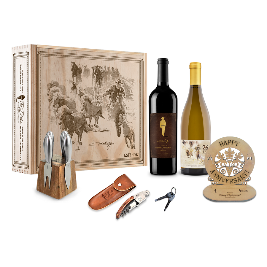 John Wayne is the portrait of an America whose confidence embodies the virtues that are well worth preserving: the contempt for pettiness and love of hard work; the courage to be lonely in pursuing your goals; the respect for individuals in all their cussedness; and above all, the willingness to fight and die for a cause bigger than yourself. All of that is John Wayne, and it’s neither male nor female, conservative nor liberal. What it is, and always was, is American. “All I’m for is the liberty of the individual.” – John WayneWe introduce you to The Duke, our flagship Napa Valley Cabernet Sauvignon is a classic representation of the appellation’s preeminent varietal. Notes of black cherry, blackberry and plum are complemented by hits of toasted oak, dried currant and baking spice. Fine-grained tannins and ample brightness on the palate give way to a polished mouthfeel and exceptionally long finish. Retail Price: $95.00 / 750 ml The Duke Wine Club Member Price: $75.00 / 750 ml