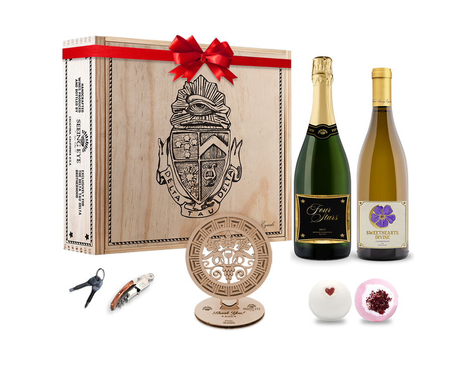 Whether you are enjoying with a brother, friend or family the Four Stars Champagne offers shades of nostalgia of a Delts journey. This premium sparkling wine – meticulously and artfully made in the traditional champagne method – rivals anything found from the best Champagne houses in Épernay and Reims. Blended superbly from Chardonnay and Pinot Noir, this magnificent Napa Valley Brut exhibits rich fruit aromatics of strawberry and delicate white cherry that follows through to a creamy mid-palate accompanied with highlights of lime and wet minerality and a lingering vibrant finish.