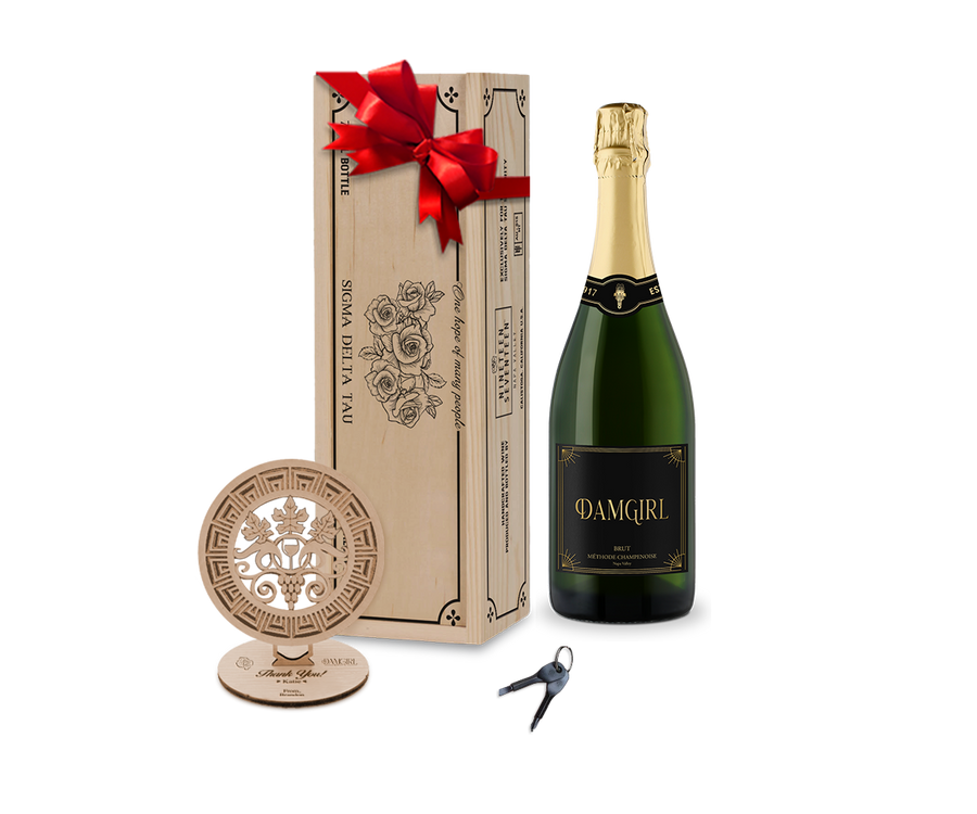 Our sparkling wine was created to honor the seven women who founded Sigma Delta Tau at Cornell University in 1917. Each founder brought something unique to the organization and their collective spirit created the legacy our sisters have been gifted. The DAMGIRL acronym was created as a way to highlight and discuss our founders using the first letter of each of their first names. Open a bottle of DAMGIRL wine to celebrate our seven founders and the special occasions in your life.
