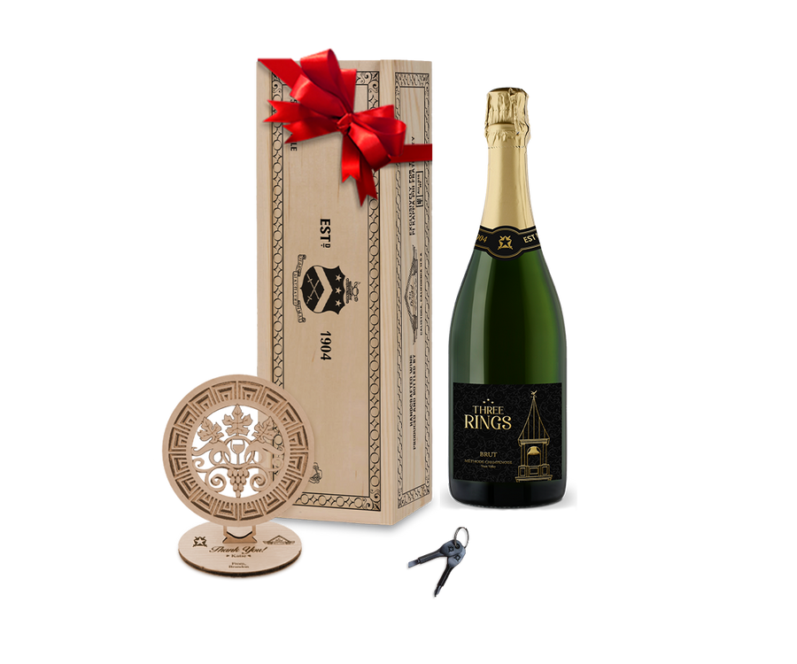 We introduce to you Three Rings. This premium sparkling wine – meticulously and artfully made in the traditional champagne method – rivals anything found from the best Champagne houses in Épernay and Reims. Blended superbly from Chardonnay and Pinot Noir, this magnificent Napa Valley Brut exhibits rich fruit aromatics of strawberry and delicate white cherry that follows through to a creamy mid-palate accompanied with highlights of lime and wet minerality and a lingering vibrant finish.