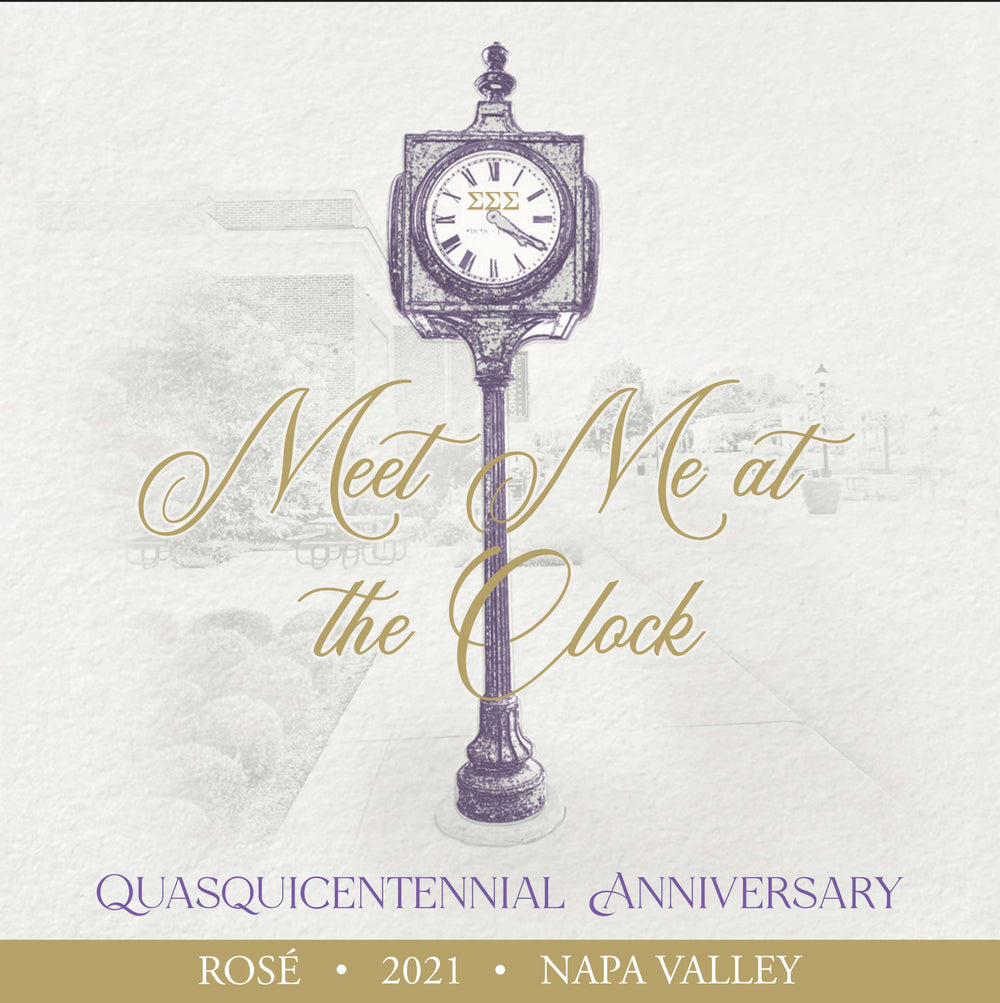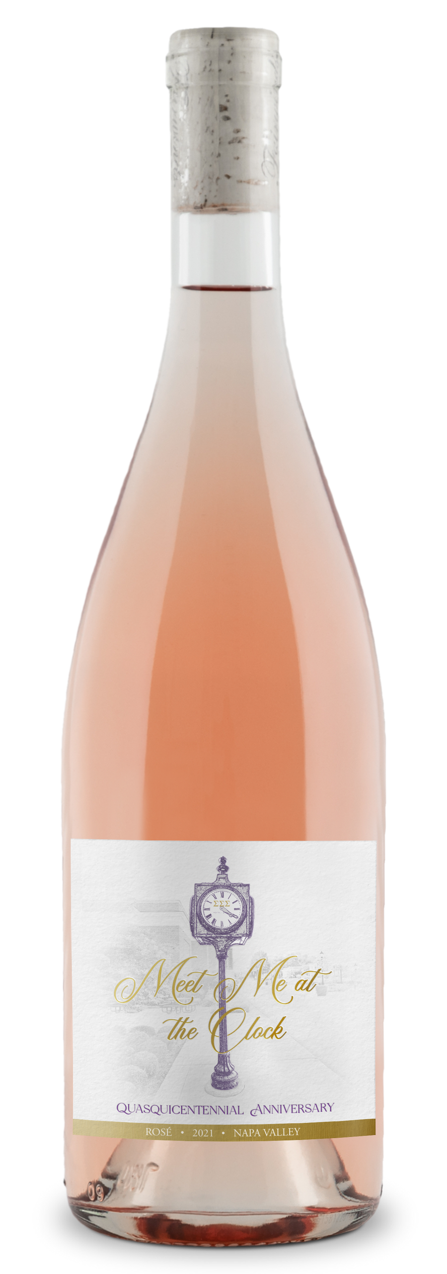 We introduce you to Meet Me at the Clock. Our 2021 Rosé of Cabernet Sauvignon. The watermelon and strawberry notes burst out of the glass. When served cool on a warm day, the juicy acidity of the 2021 Rosé makes for a very refreshing and versatile wine, perfect to share on any occasion. Look for the hidden imagery in the rose petals.