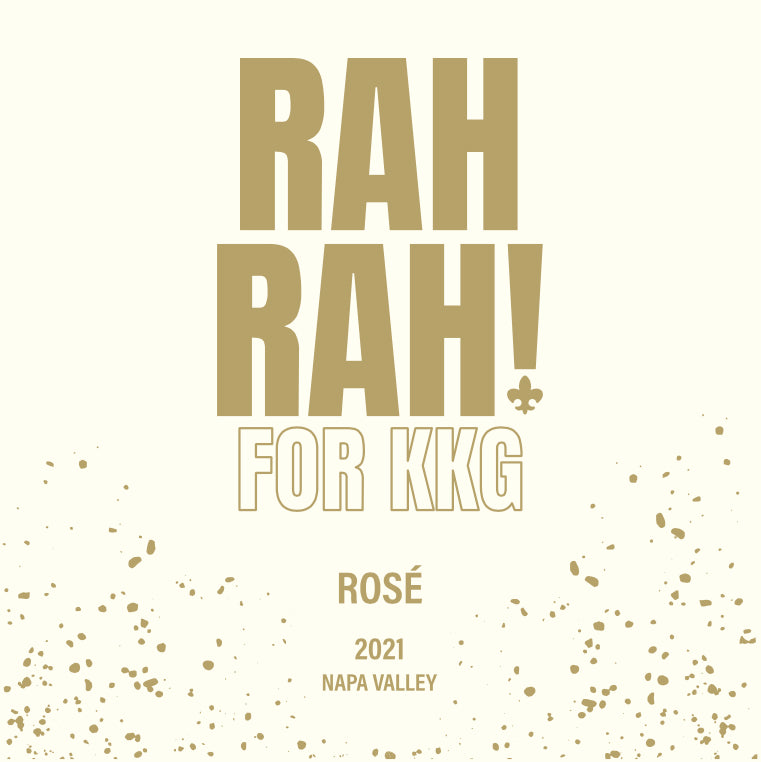 We introduce you to Rah Rah for KKG, our 2021 Rosé of Cabernet Sauvignon. The watermelon and strawberry notes burst out of the glass. When served cool on a warm day, the juicy acidity of the 2021 Rosé makes for a very refreshing and versatile wine, perfect to share on any occasion. Look for the hidden imagery in the rose petals.