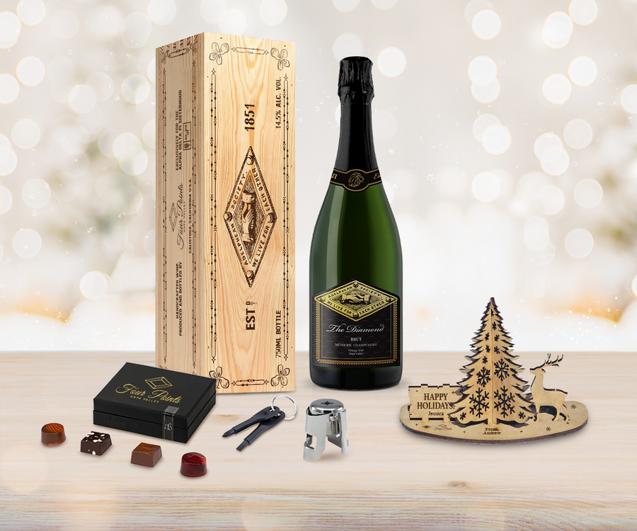We introduce to you, The Diamond. This premium sparkling wine – meticulously and artfully made in the traditional champagne method – rivals anything found from the best Champagne houses in Épernay and Reims. Blended superbly from Chardonnay and Pinot Noir, this magnificent Napa Valley Brut exhibits rich fruit aromatics of strawberry and delicate white cherry that follows through to a creamy mid-palate accompanied with highlights of lime and wet minerality and a lingering vibrant finish.