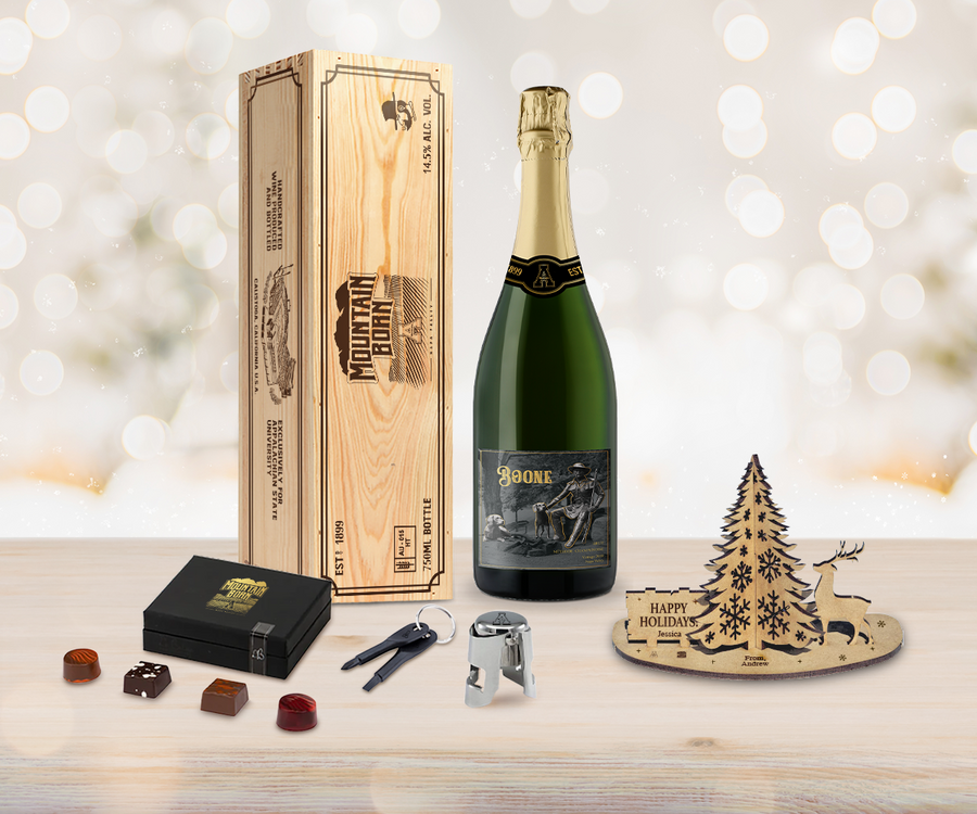 We introduce to you Boone Brut. This premium sparkling wine – meticulously and artfully made in the traditional champagne method – rivals anything found from the best Champagne houses in Épernay and Reims. Blended superbly from Chardonnay and Pinot Noir, this magnificent Napa Valley Brut exhibits rich fruit aromatics of strawberry and delicate white cherry that follows through to a creamy mid-palate accompanied with highlights of lime and wet minerality and a lingering vibrant finish.