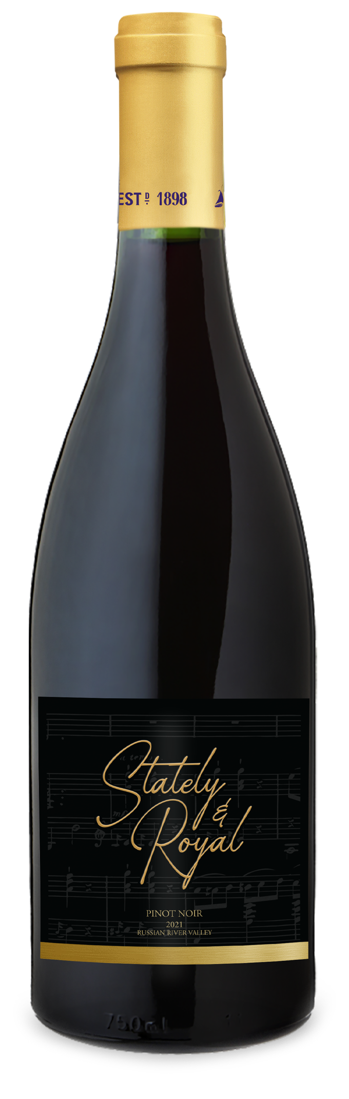 We introduce you to our Stately & Royal Pinot Noir. From the Russian River Valley AVA of Sonoma County, this beautiful wine is influenced mostly by the fog of the AVA and is very aromatic, with a velvet mouthfeel, and has a fruit character that is ripe and intense.