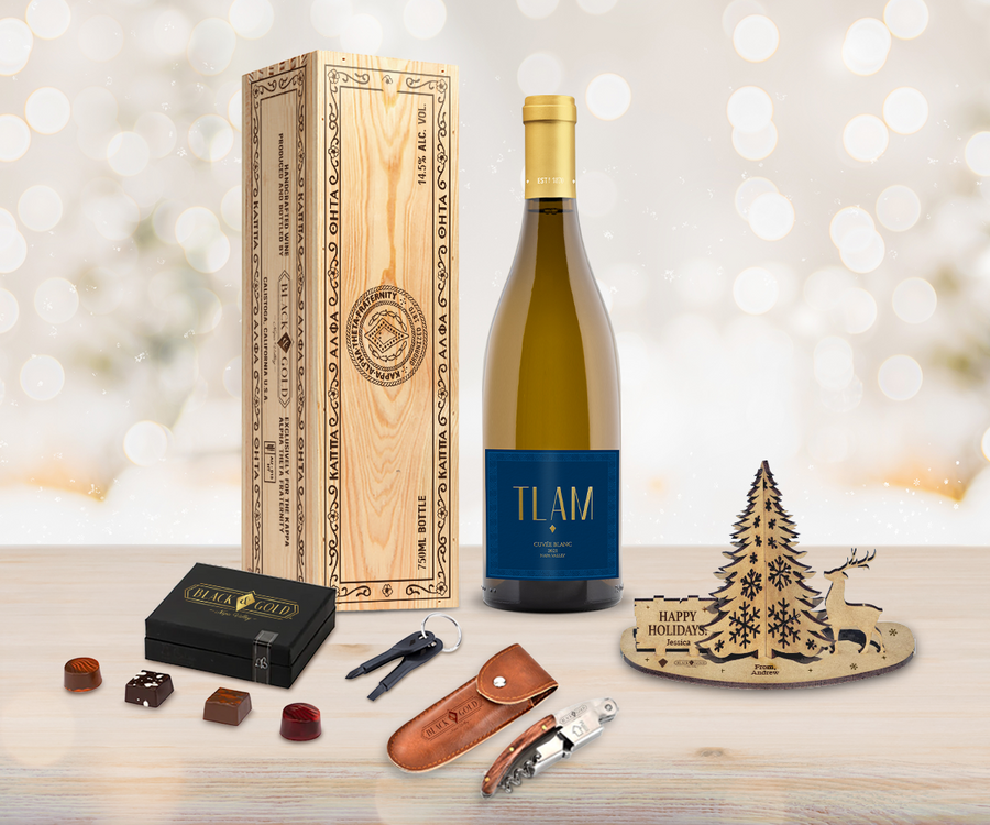 We introduce you to our elegant TLAM Cuvée Blanc. This is an alluring and complex white wine blend with a sensuous offering of tropical fruits, white flowers, and subtle spice. The nose is like a bouquet of flowers and jumps from the glass with ripe lemon, white peach, and orange blossom, followed by notes of toast and white pepper. On the tongue, lemon bursts forward with pineapple and other tropical fruit, with undertones of vanilla. The finish is bright and zingy and mellows with vanilla and subtle spices in its length.