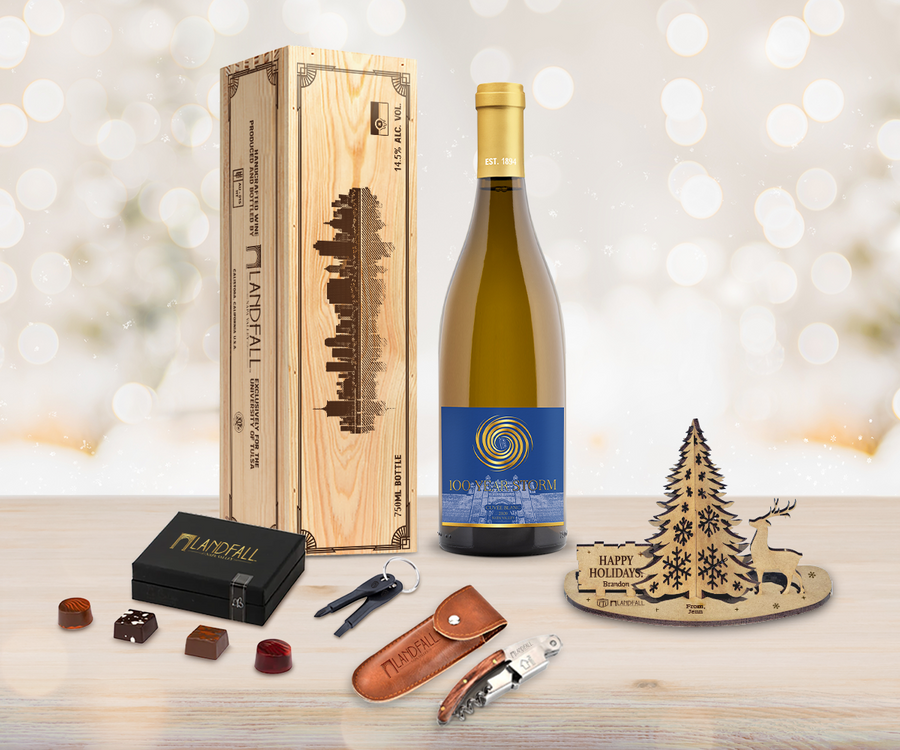 We introduce you to 100 Year Storm. This elegant white wine blend is alluring and complex, with a sensuous offering of tropical fruits, white flowers and subtle spice. The nose is like a bouquet of flowers and jumps from the glass with ripe lemon, white peach and orange blossom followed by notes of toast and white pepper. On the tongue, lemon bursts forward with pineapple and other tropical fruit, with undertones of vanilla. The finish is bright and zingy and mellows with vanilla and subtle spices in its length.