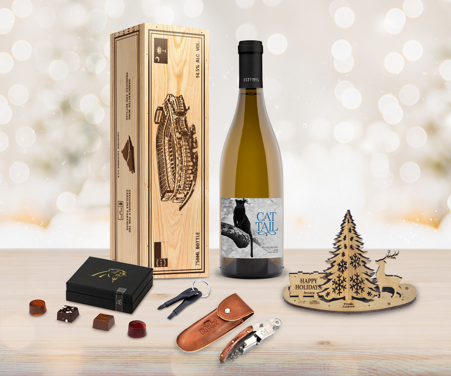 We introduce to you Cat Tail. This elegant white wine blend is alluring and complex. The nose is like a bouquet of flowers and jumps from the glass with ripe lemon, white peach and orange blossom followed by notes of toast and white pepper. On the tongue, lemon bursts forward with pineapple and other tropical fruit, with undertones of vanilla. The finish is bright and zingy and mellows with vanilla and subtle spices in its length.